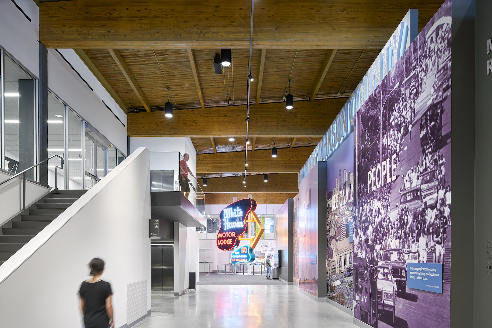 The facility’s commons area greets guests and ushers them into the dedicated space for the Johnson County Museum that features the county’s first All-Electric House, which was moved into the new space intact. The area also features a temporary exhibit area for traveling shows, a kids play area and climate-controlled archival space.