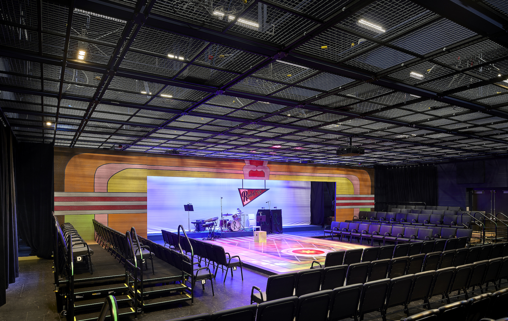The remaining areas feature offices, classrooms, a dance studio, full catering kitchen and support areas. The team replaced the entire MEP system, which included two steel mezzanines to house the units.