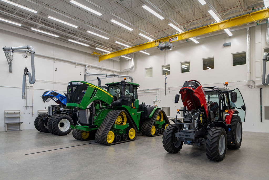 At South Dakota State University, the Raven Precision Agriculture Center emphasizes collaborative learning methods by gathering agronomy, engineering and computer science into one building. The 122,000 square foot facility features numerous specialty spaces including a dynamometer bay, a fabrication bay, a bio-processing suite, woodshop, quarter-scale tractor lab and many others.
